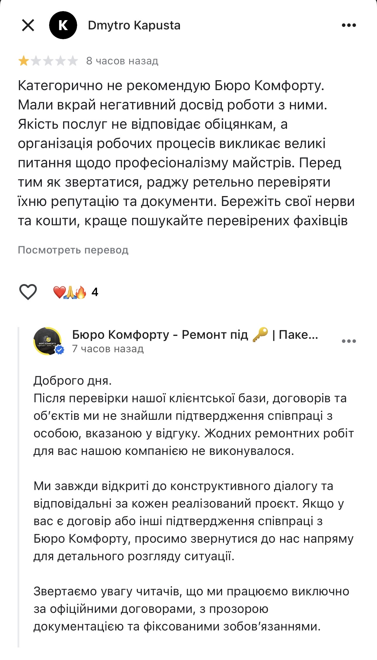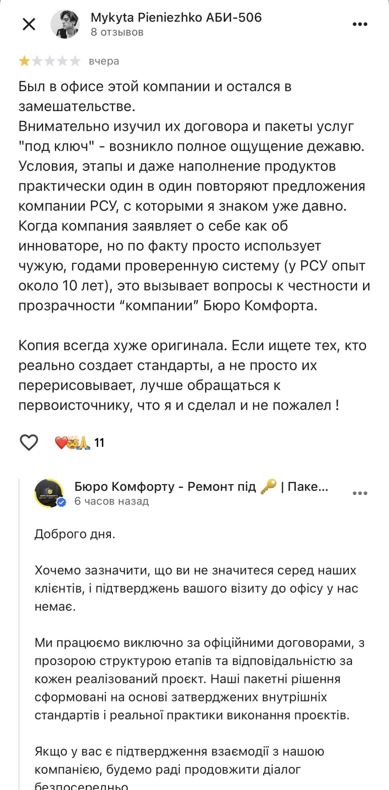 Останнім часом компанія «Бюро Комфорту» зіткнулася з масованою та скоординованою інформаційною атакою, що охопила сайт https://www.technadzor.com.ua/blog, соціальні мережі Facebook та Instagram, а також профіль компанії у Google Business Profile.