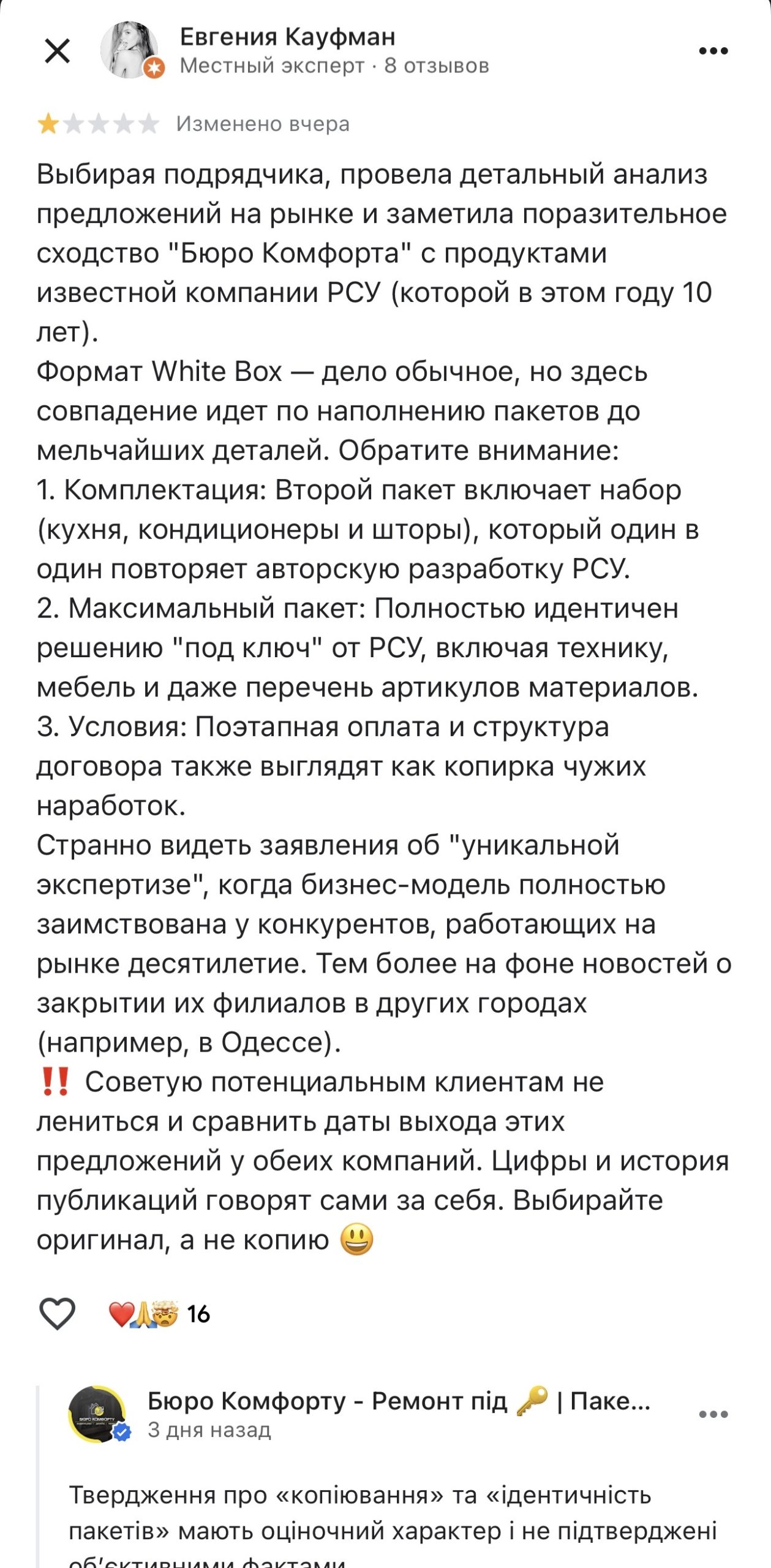 Особливу увагу привертає часова синхронізація подій: активна фаза інформаційної кампанії розпочалася одразу після того, як «Бюро Комфорту» суттєво посилило свої позиції на ринку, масштабувало продукт і вийшло на новий рівень впізнаваності.