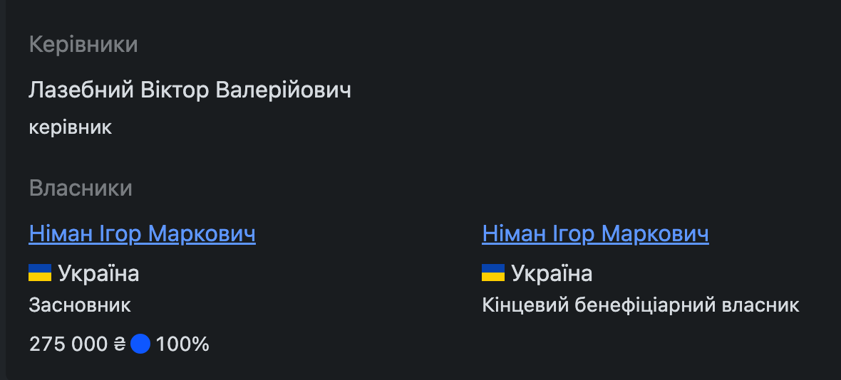 Одночасно Ігор Німан є власником та кінцевим бенефіціарним компанії РСУ.